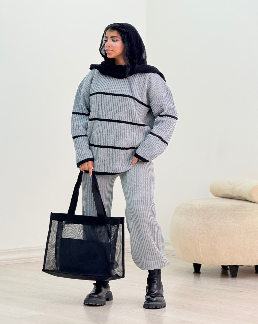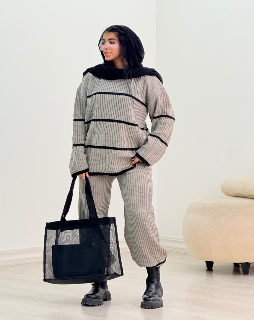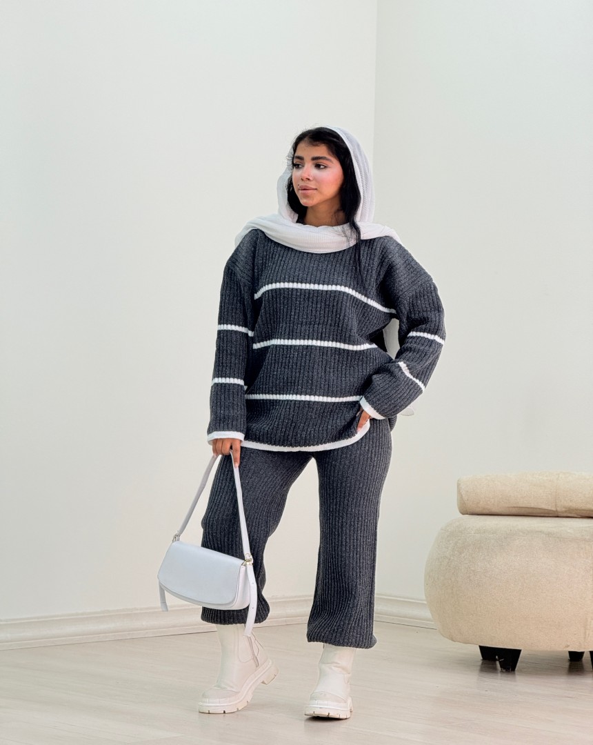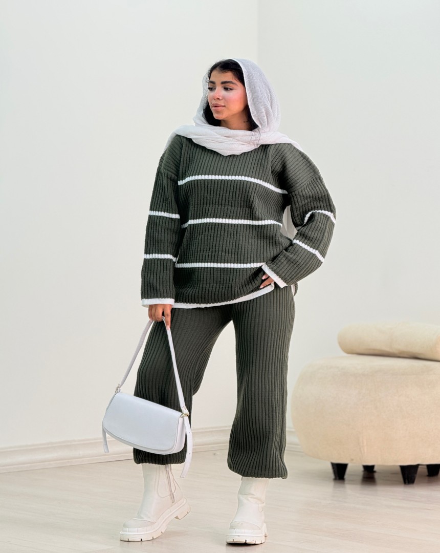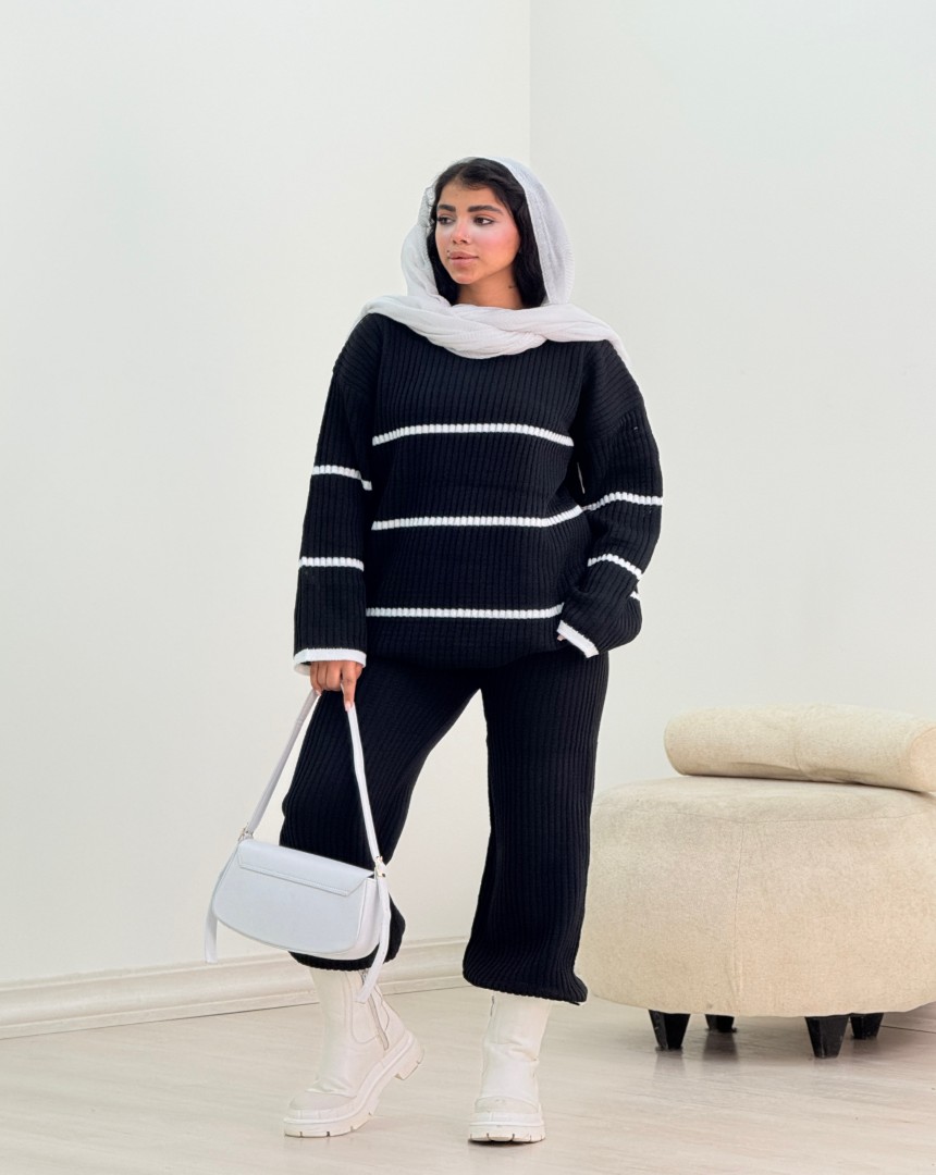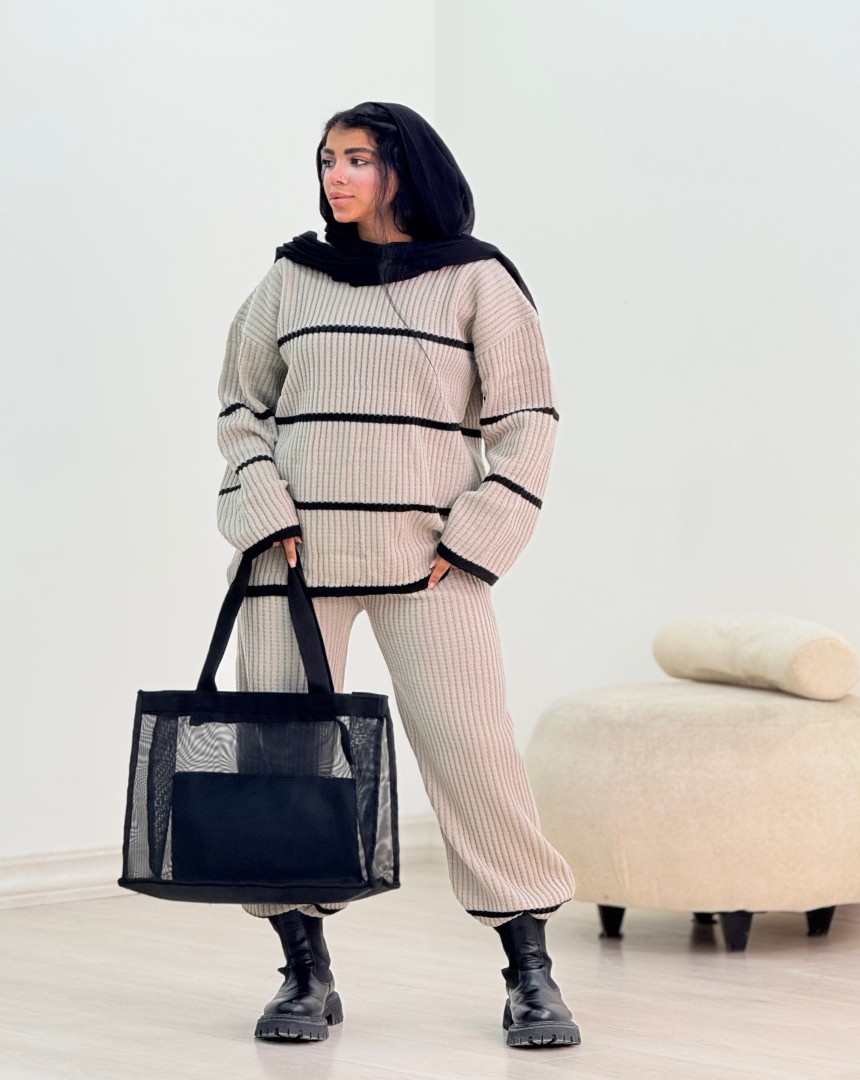 ظاهری:راه راه،یقه گرد،کمر شلوار فول کش