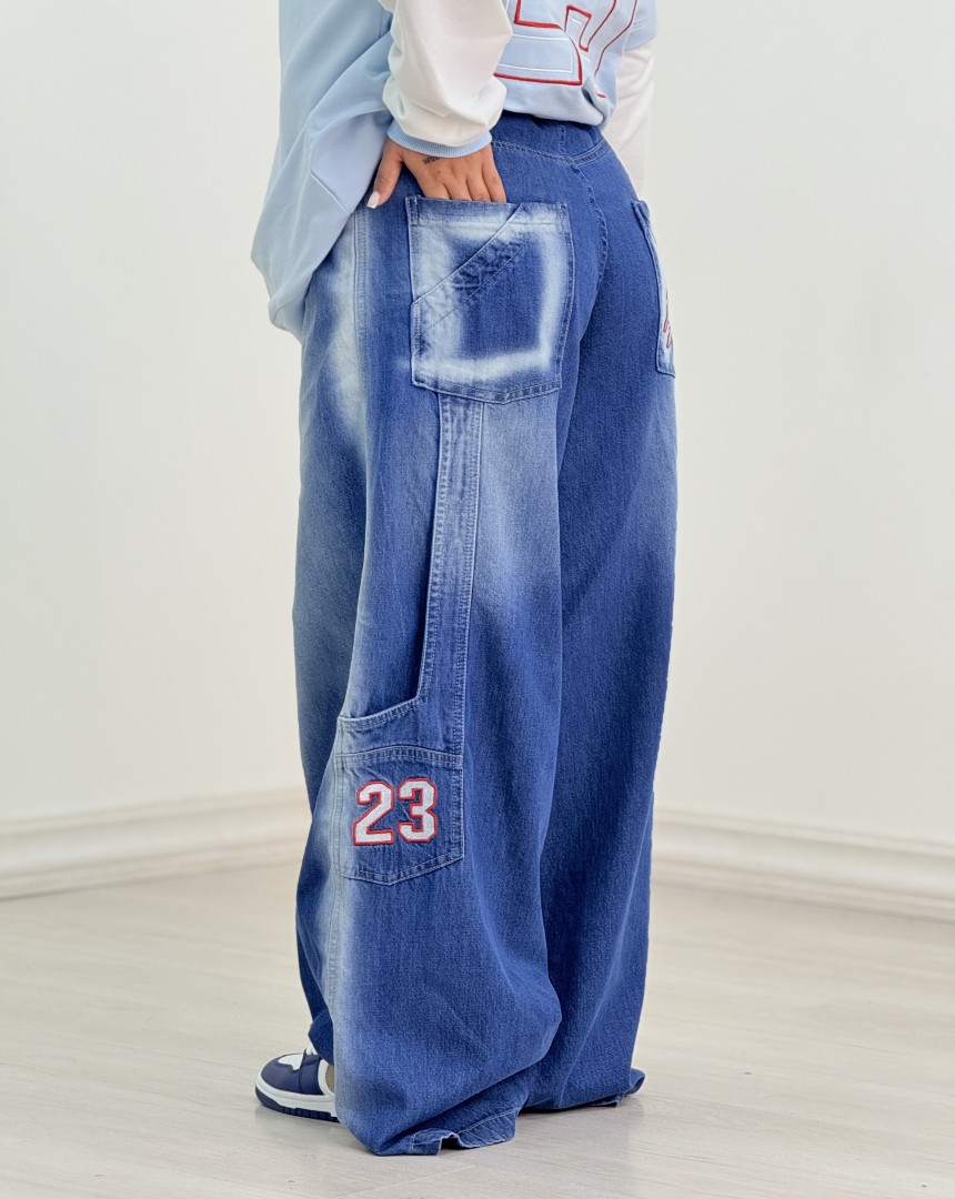 ظاهری:فرم بگ،کمرنیم کش،جیب،دکمه وزیپ