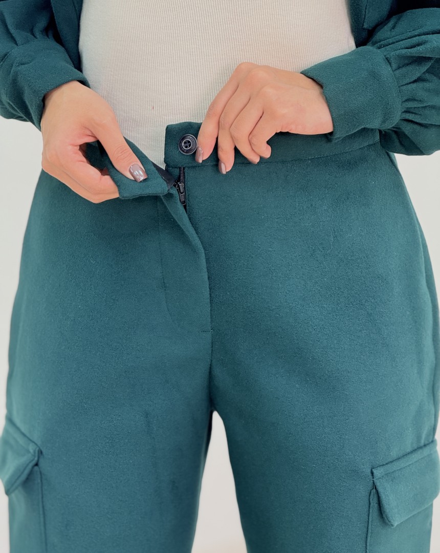 ظاهری:دوجیب،یقه مردانه،مچ دکمه و پلیسه،شلوار پایین گت،سه جیب،دکمه و زیپ