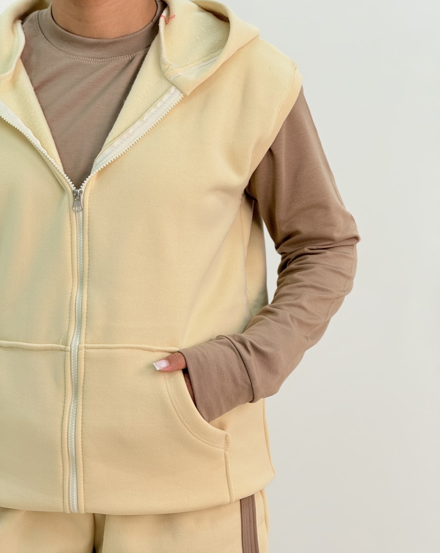 جلیقه:قدازجلووپشت:70سانتی متر / قدحلقه آستین:19سانتی متر/ کراپ: 70سانتی متر/آستین:63سانتی متر/ شلوار:103سانتی متر/ کمرفول کش